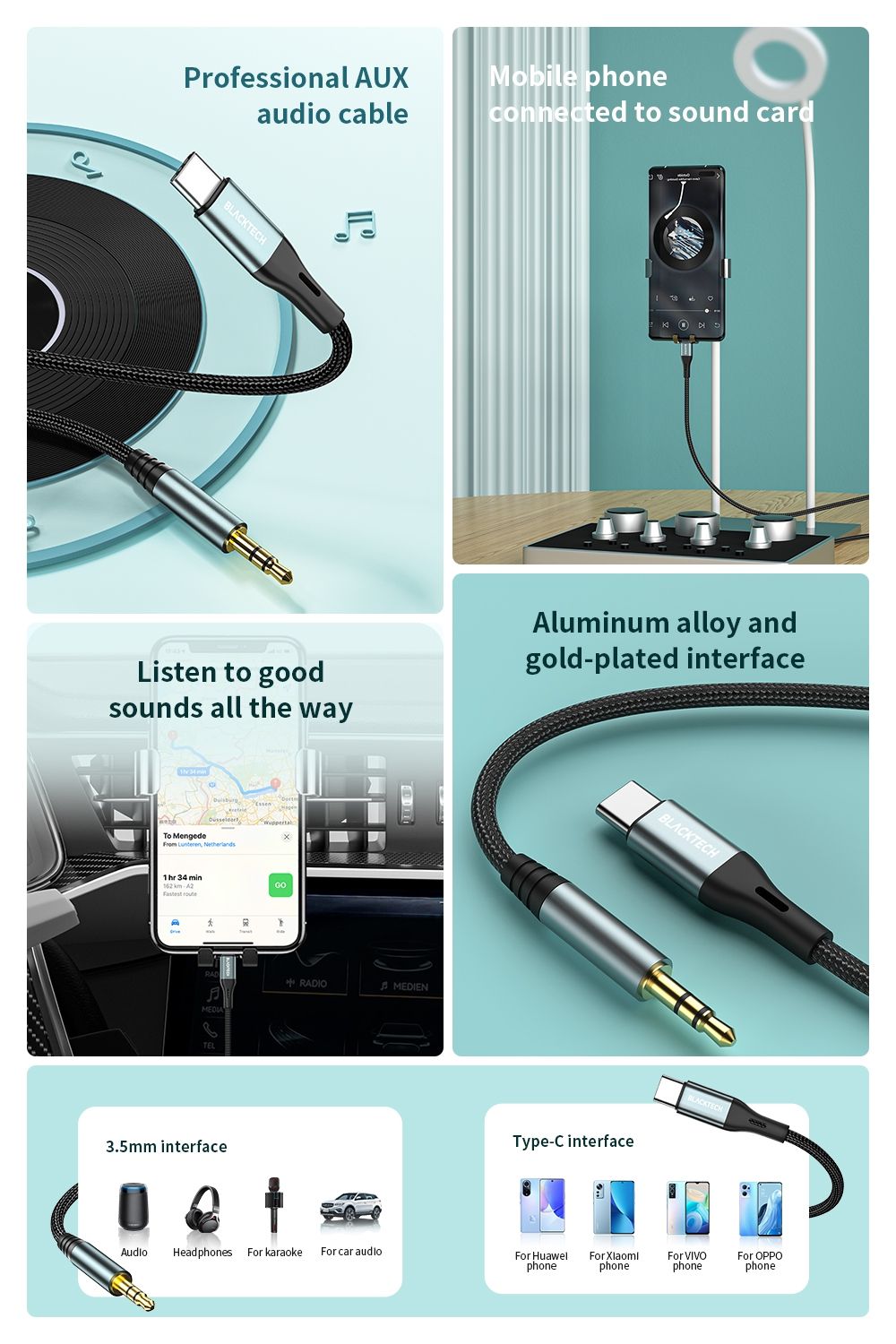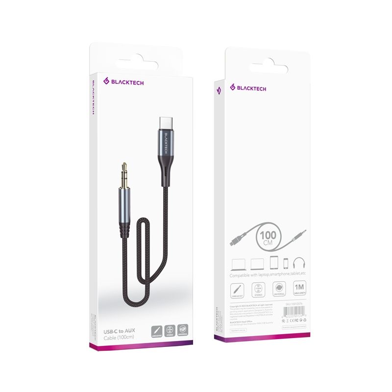 BLACKTECH BL-DUP03C USB-C to AUX Braided Super Tough Cable 100cm – Gray