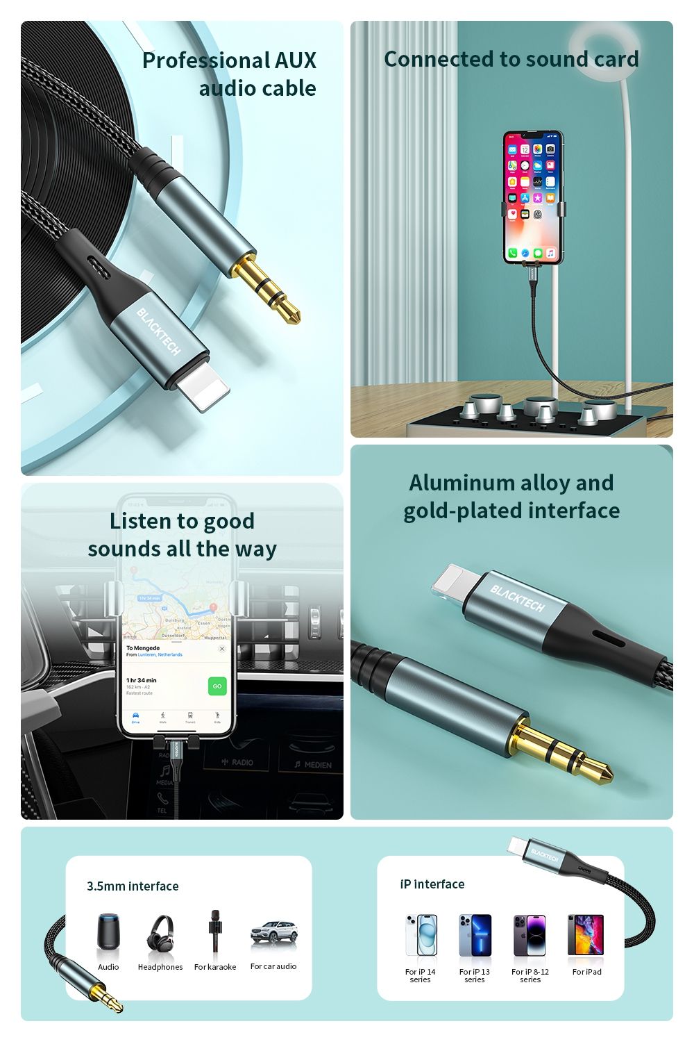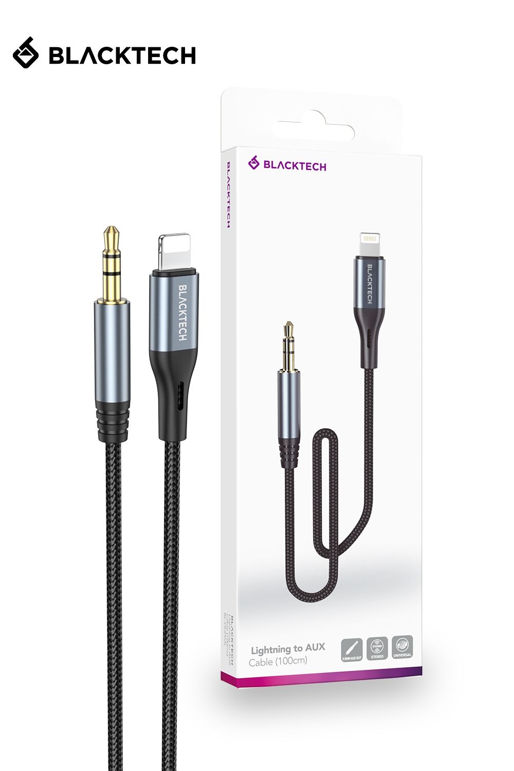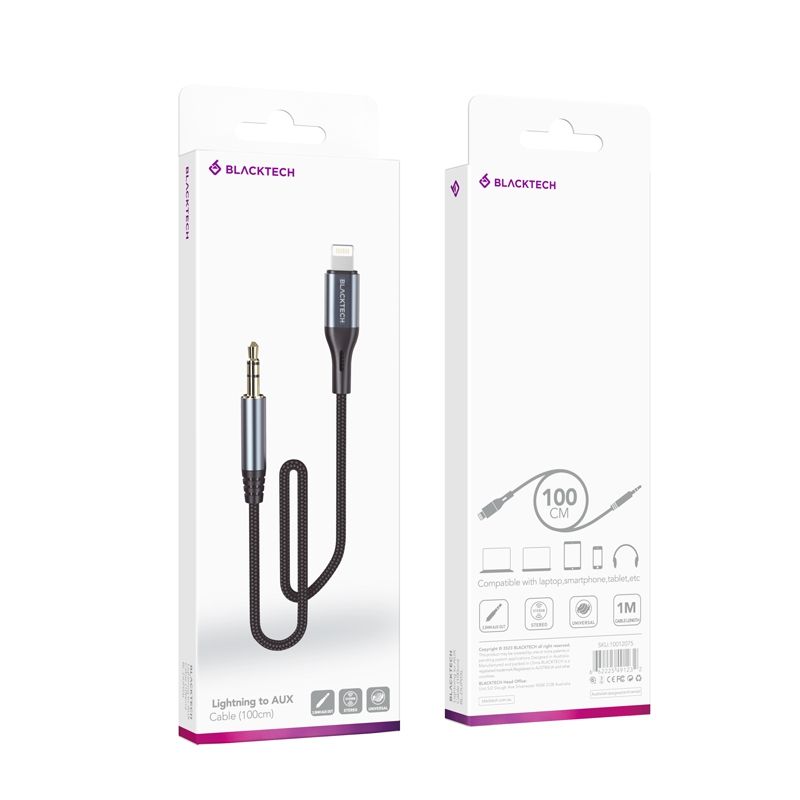 BLACKTECH BL-DUP03L Lightning to AUX Braided Super Tough Cable 100cm – Gray