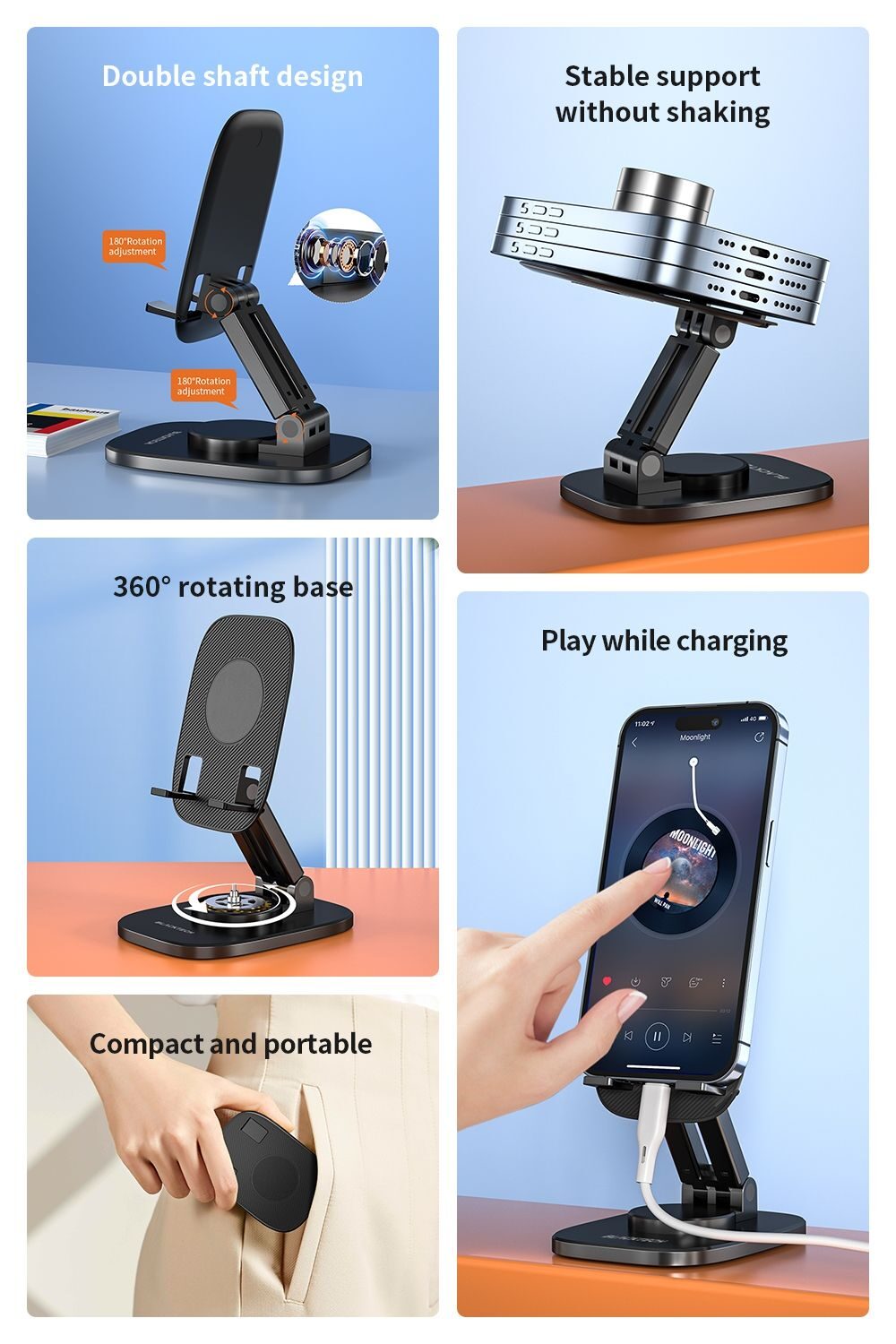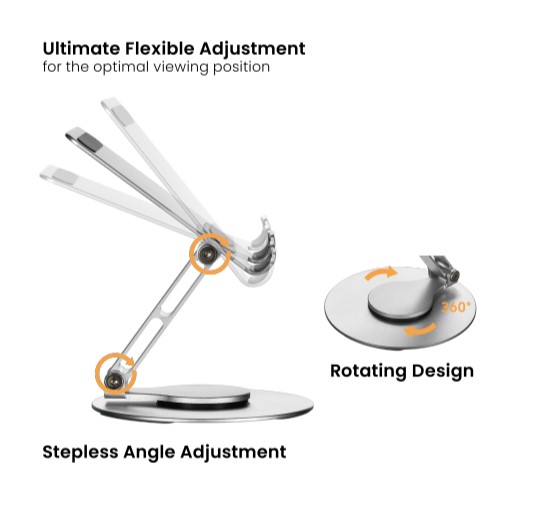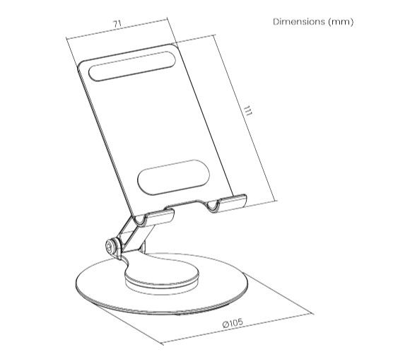 Brateck PHS06-6 FOLDING ALUMINUM PHONE & TABLET STAND WITH 360° ROTATION Fits smartphone and tablet ≤10“ – Silver