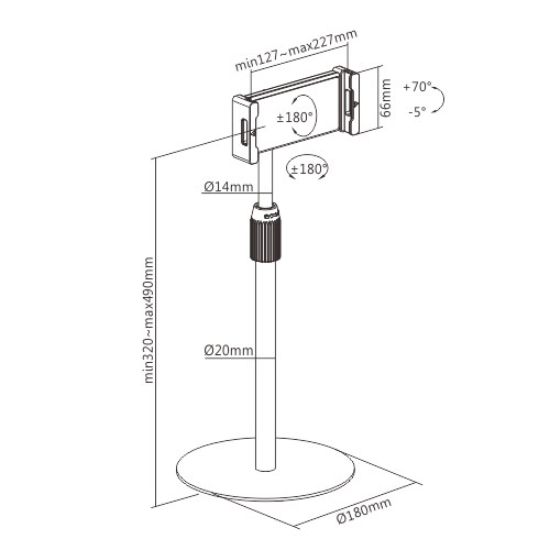Brateck Ball Join design Hight Adjustable tabletop Stand for Tablets & Phones Fit most 4.7”-12.9” Phones and Tablets – Black