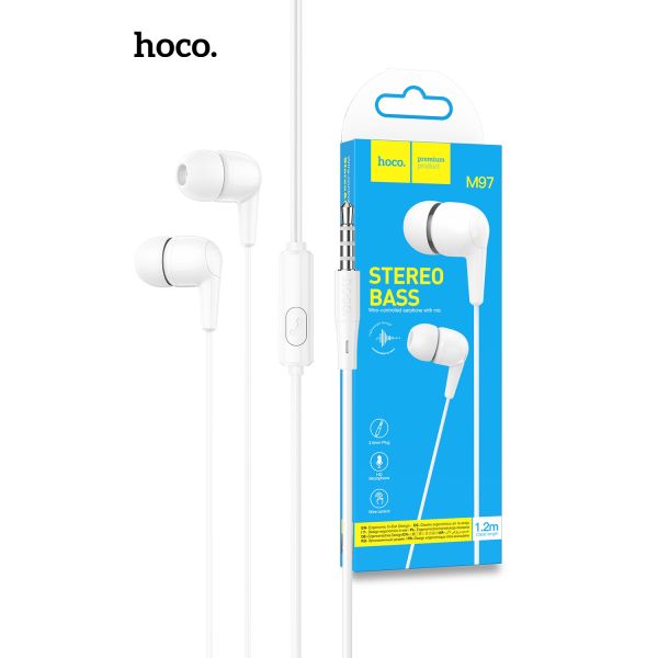 M97 Enjoy, wired earphones with mic, 1.2m, 3.5mm plug, one-button control.