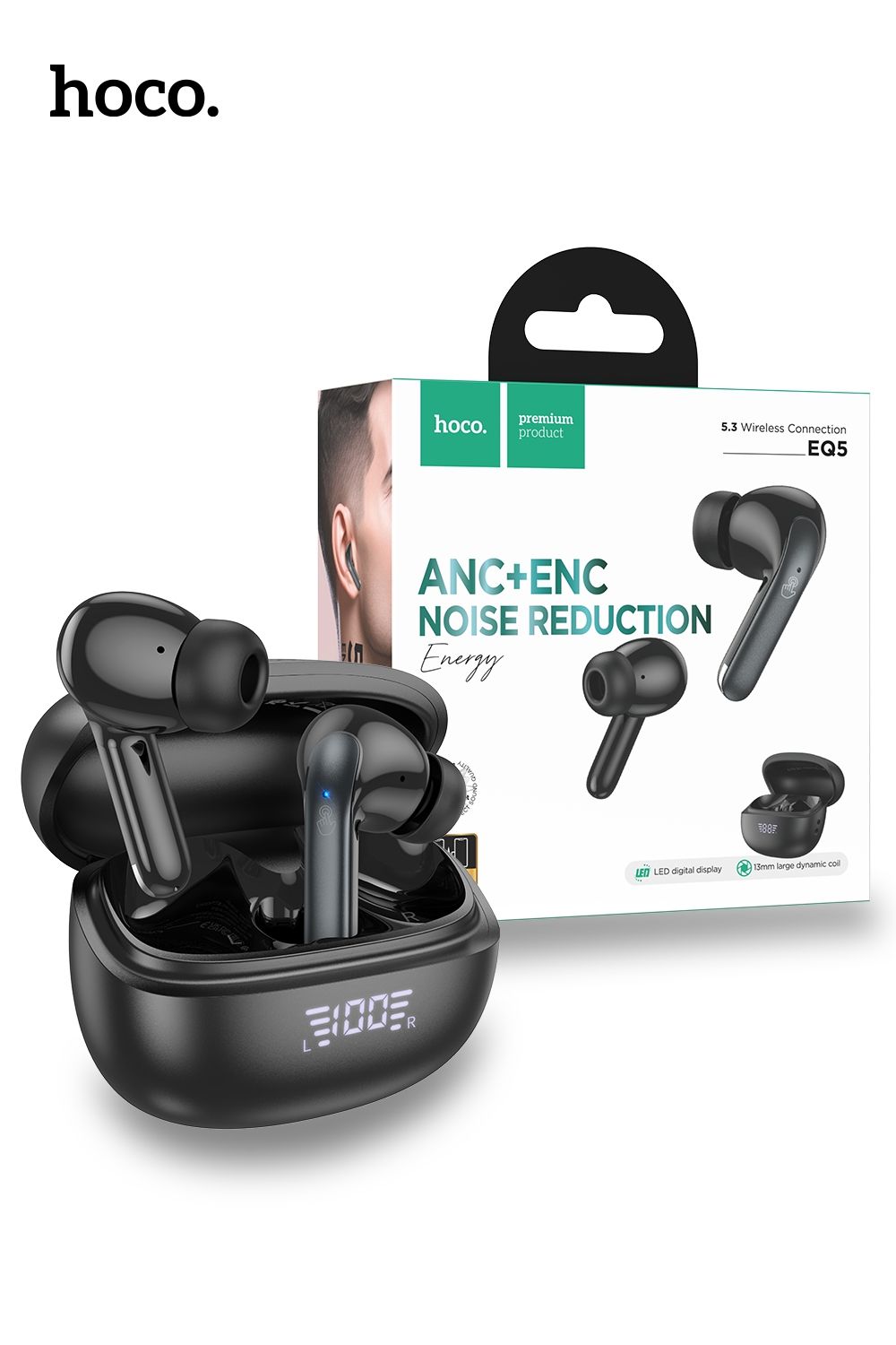 Hoco EQ5 Energy ANC ENC Noise Cancelling True Wireless Bluetooth Headset – Black