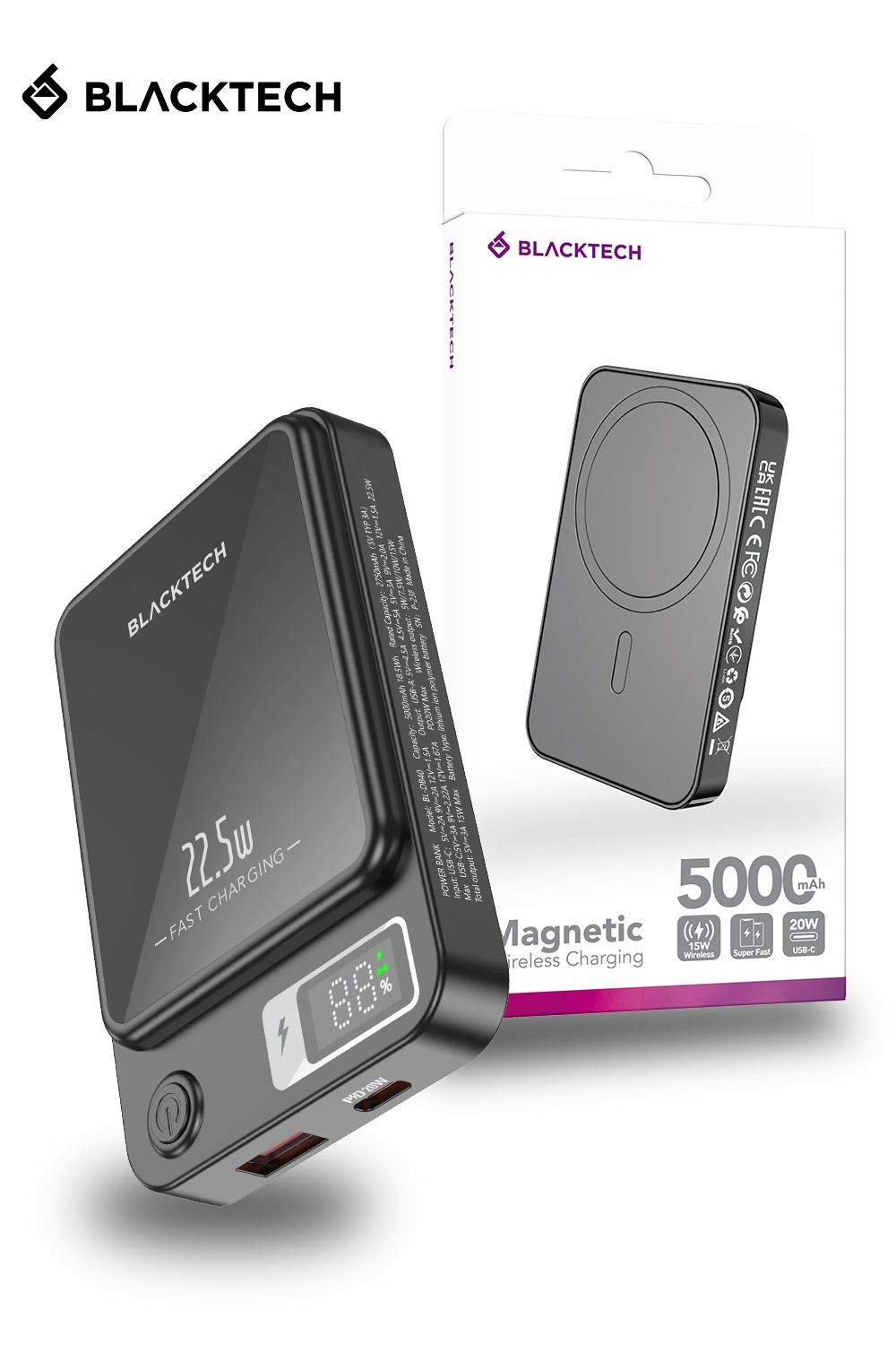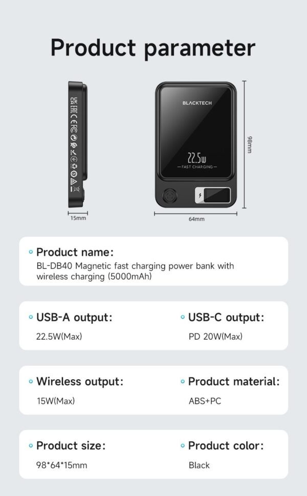 Ultra-Mini Fast Charging Power Bank: Experience rapid charging with the Blacktech 22.5W 10000mAh Power Bank, designed for ultimate portability and efficiency.