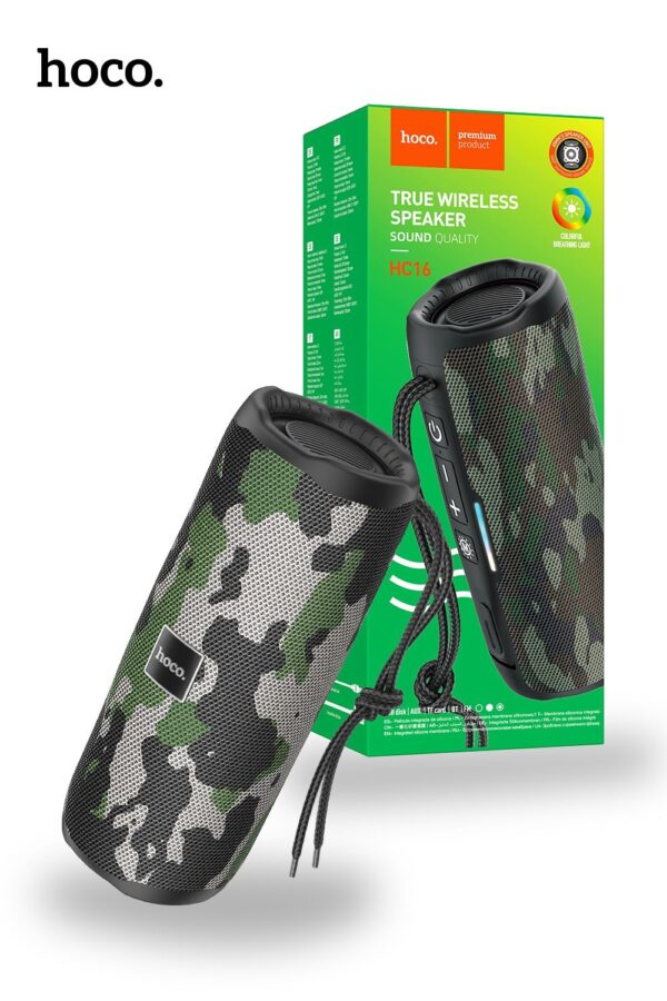 The Hoco HC16 Bluetooth Speaker is designed to deliver an immersive vocal experience, ensuring crystal-clear and powerful sound reproduction for both music and conversations.
