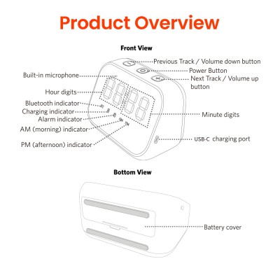 Bluetooth speaker + digital alarm clock + hands-free calling + mirror LED display. This small digital clock for bedrooms is designed for modern life.