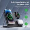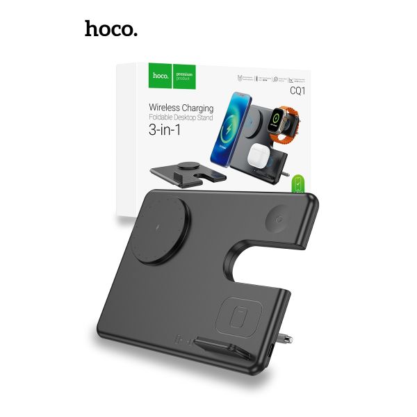 Hoco CQ1 15W Geek Folding 3 in 1 Magnetic Fast Wireless Charger For iWatch – Black