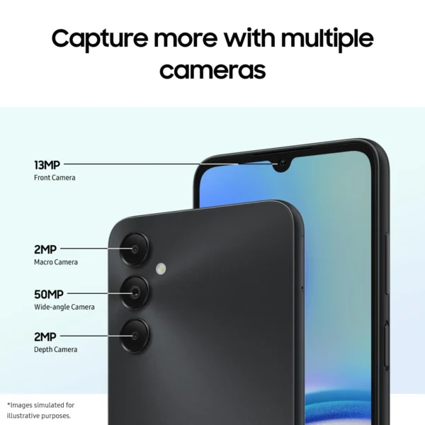 The Galaxy A15’s 6.5-inch Super AMOLED display boasts vibrant clarity even in direct sunlight with Vision Booster, smooth-scrolling with improved 90Hz refresh rate, enhanced brightness up to 800 nits, and all-day comfort with reduced blue light thanks to Eye Comfort Shield.
