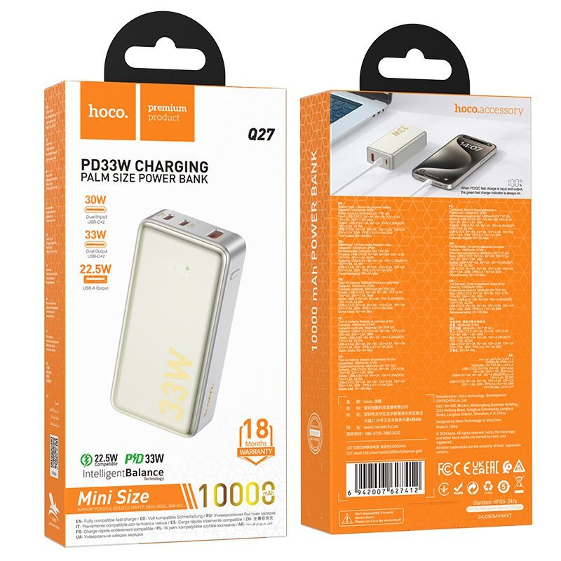 hoco Q27 Jewel 33W power bank(10000mAh) – titanium gold