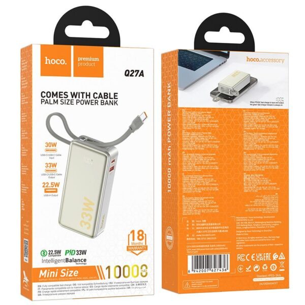 hoco Q27A Jewel 33W power bank with cable(10000mAh) – titanium gold