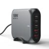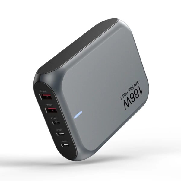 USP 188W Five Ports USB-C PD GaN Wall Charger Black – 3x USB-C, 2x USB-A, Efficient, High Quality, Tablet, Laptop,Watch, iPhone, Samsung Galaxy