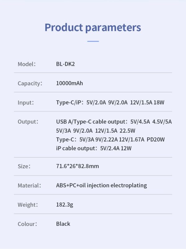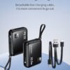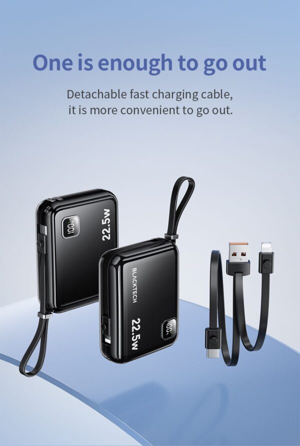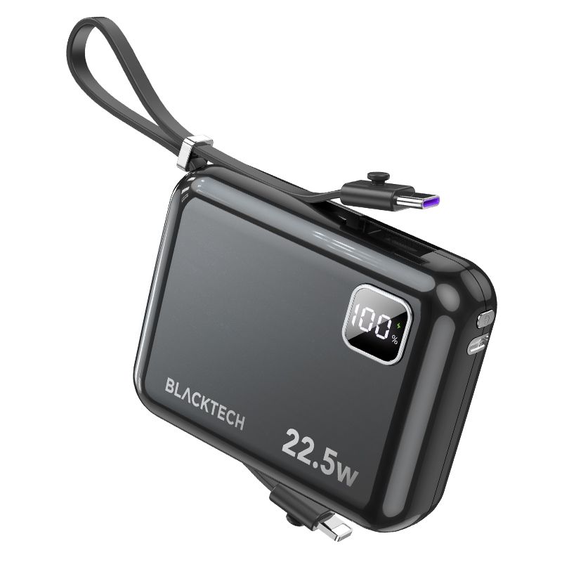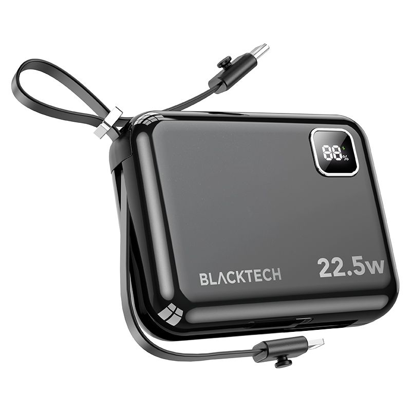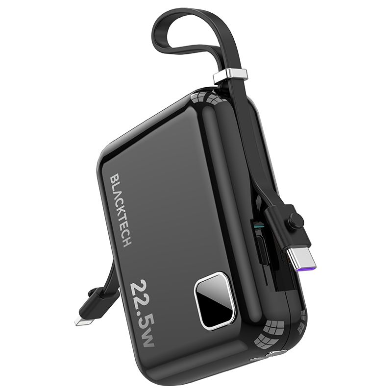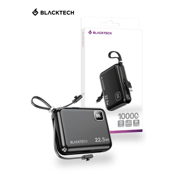 BLACKTECH BL-DK2 10000mAh 22.5W Ultra Small With Built In ALL Charging Cable Power Bank – Black