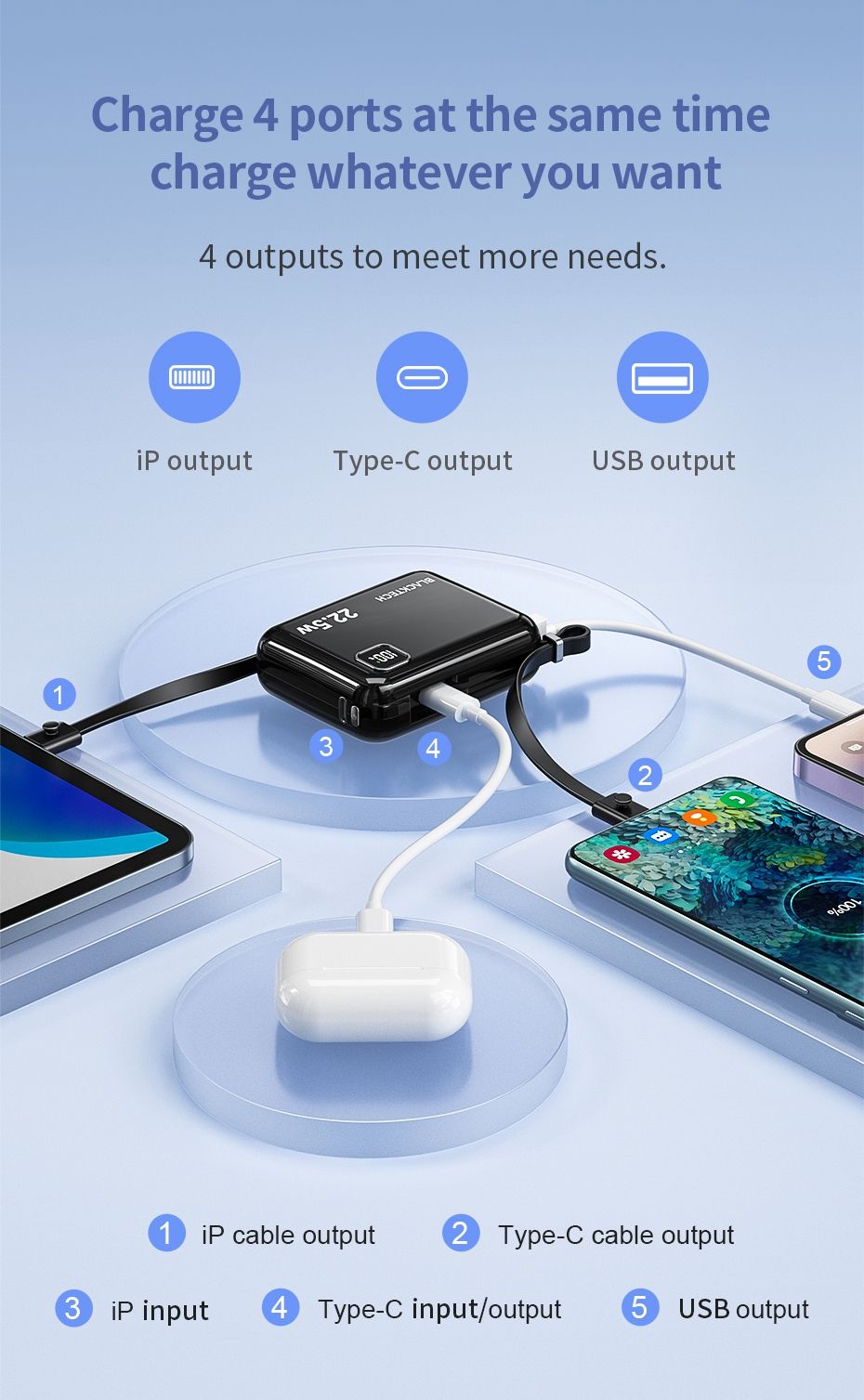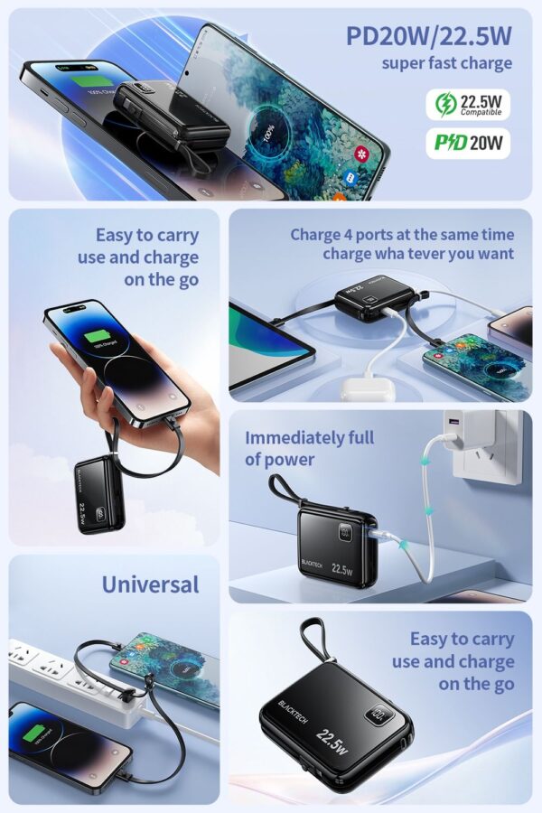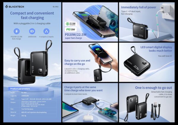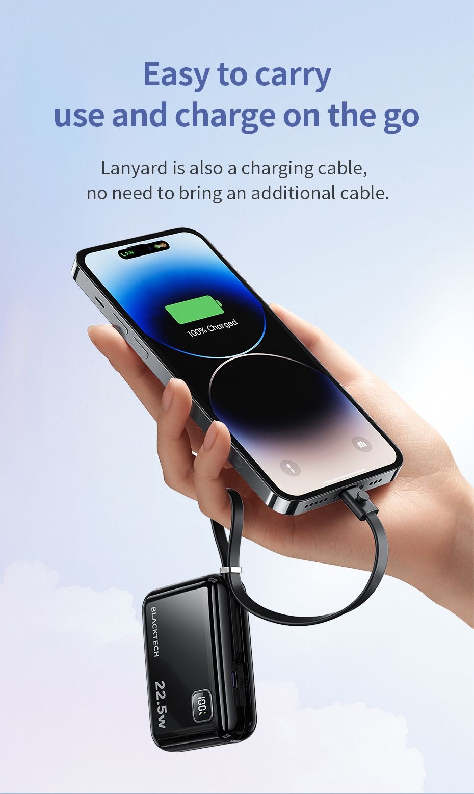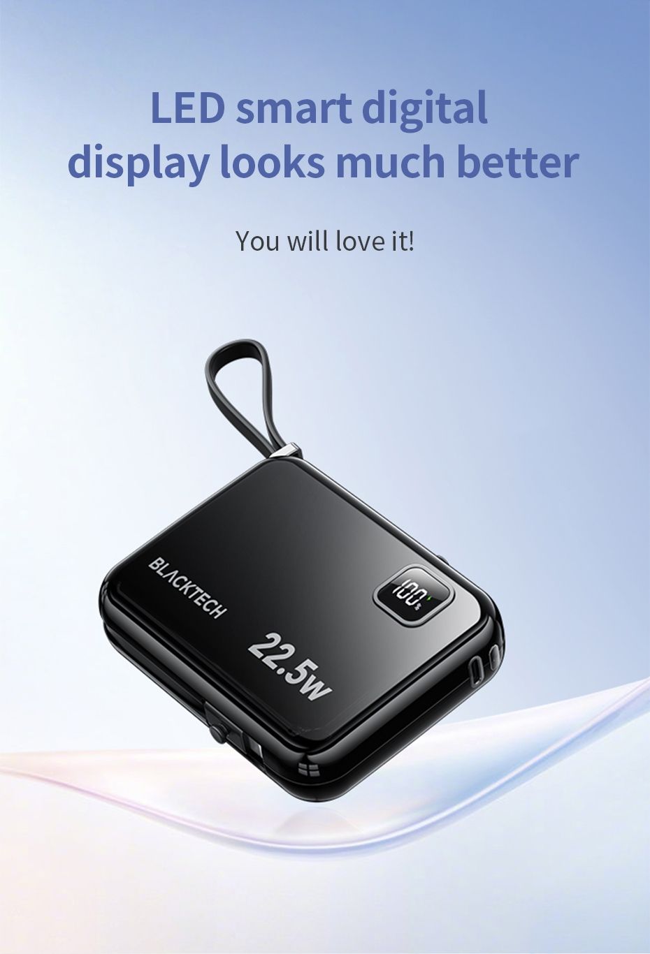 Ultra-Mini Fast Charging Power Bank: Experience rapid charging with the Blacktech 22.5W 10000mAh Power Bank, designed for ultimate portability and efficiency.
