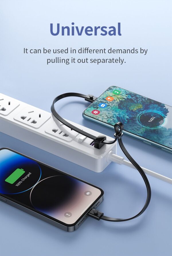 Dual USB-A port, built-in cables for Lightning and Type-C outputs.