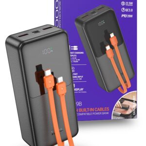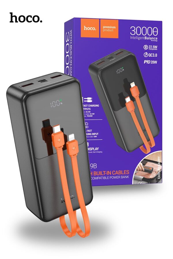 Hoco J119B 30000mAh 22.5W With Built In Charging Cable Power Bank – Black
