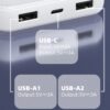 USP 20K mAh Power Bank – White, 2 USB-A Outputs (5W & 10W), 2 USB Input, Digital Display, Comfortable Grip, Charge 2 Devices, Intelligent Matching