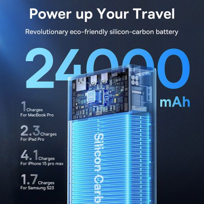 Baseus Blade 100W Laptop Power Bank is a 20,000mAh capacity battery pack in a slim form factor compact enough to slide in your bag without the bulk and to even cover your laptop’s battery. It has 4 fast charging ports to fast charge up to 4 devices at once.