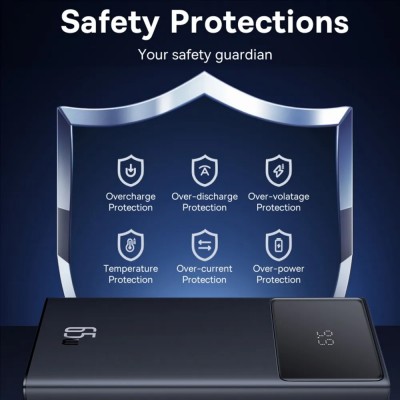 This portable digital power bank has a maximum output power of 30W and supports various fast charging protocols. It can charge three devices simultaneously, with a digital display to show the battery level. Built-in safety protection circuits ensure safe use.