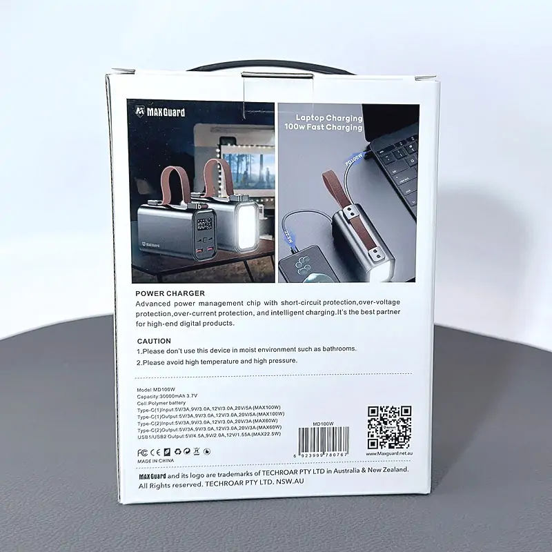 Maxguard 30000 mah PD 100W super fast charging power bank for laptop MD100W