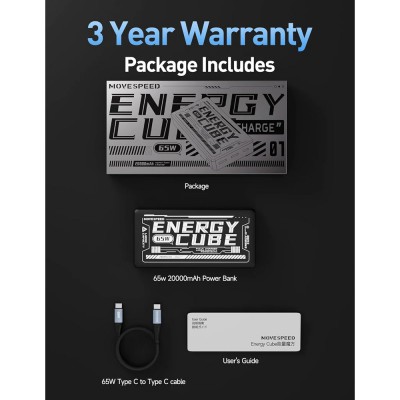 MOVE SPEED Laptop Portable Charger Power Bank 20000mAh 65W (YSPBE20-65)-Black