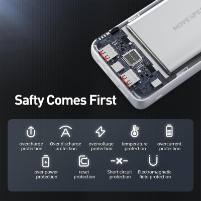 Compatible with “PD3.0” and “QC4+”,MOVESPEED laptop power bank provides an ultra-fast charging experience with a total maximum of 130W