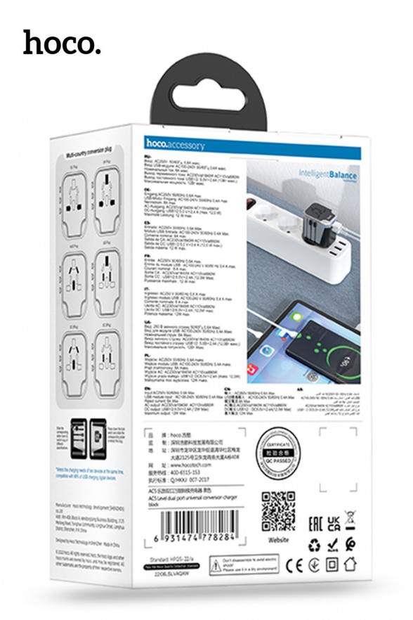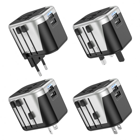 AC5 Level, wall charger, dual USB 5V / 2.4A output, with plug conversion EU / UK / US / AUS.