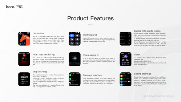 Hoco Smart Sports Watch Heart Rate Sleep Supports Calls Y5 Pro