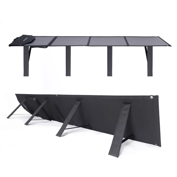 - For a portable panel ideal for camping, van life and recharging RV batteries, the Choetech foldable 160-watt panel is built to withstand the elements, It’s versatile, durable, waterproof and extremely efficient – you can power up your devices on-the-go even in low-light areas and cloudy days. The panel includes a built-in kickstand for a 45 degree angle optimal sun exposure and comes with a bag which makes the panel easily portable. Choetech’s 160W panel can be combined with a power station for the full off-grid experience.
