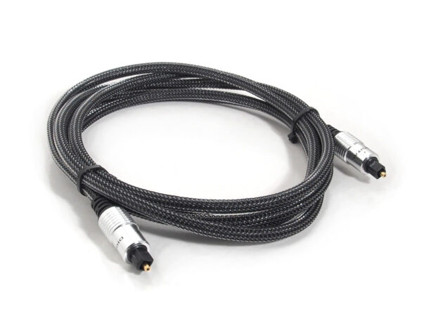 Transfer high quality, interference free audio signal, suitable for home theatre audio setups. Toslink Male to Toslink Male cable Gold-Plated Ferrule to prevent corrosion High-density nylon braided cable body Supports Compressed 5.1 / 7.1 Digital Surround Sound and DTS Cable Length: 2m