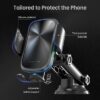 【Full automatic】 Touch Switch & Auto- Scaling, Efficient and fast operation makes driving safer, Just place your phone inside the holder, and the clamps will close and catch your phone firmly. With a gentle touch on any side of the quick-release buttons, the arms of this wireless car phone charger would automatically open.