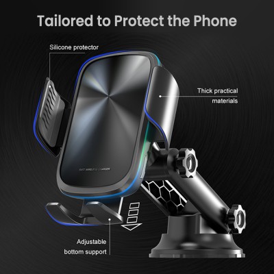 【Fashion design 】 The full and smooth lines reflect the beauty of design; The changing atmosphere light circle illuminates the beauty of the night sky. 【Tailored to Protect the Phone】 The thick material of the clamp arm, the silicone pad protects the contact surface of the phone, and the adjustable bottom support improves the charging efficiency