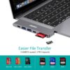Universal Micro SD/SD Ready: SD card and Micro SD card reader can be used at a fast transfer speed up to 104M/s, capacity up to 2TB; Support SD, SDHC, SDXC, SD3.0 UHS-1. this USB C hub for Macbook Pro can easy to transfer photos shooting or videos by your camera from cards to laptop in just seconds.