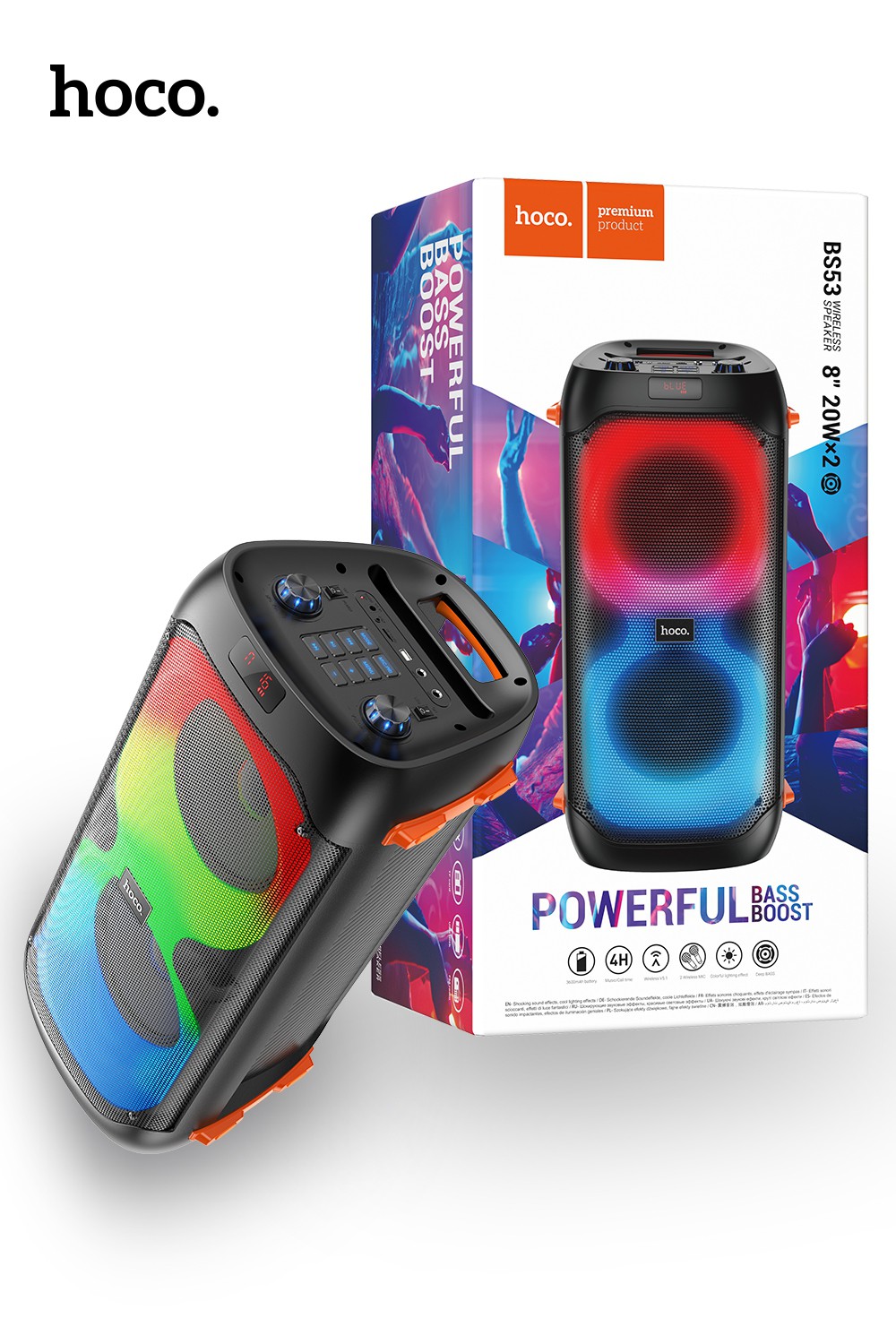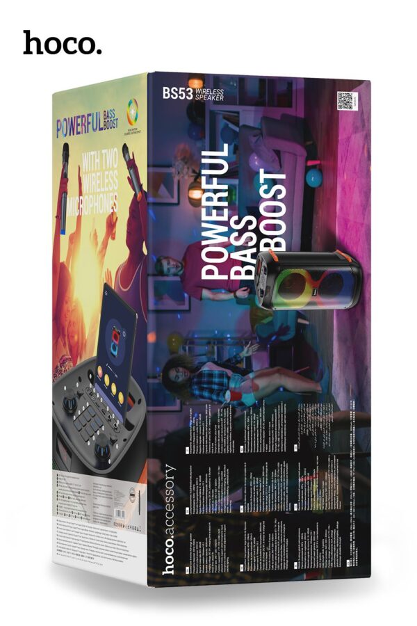 BS53 Manhattan, wireless speaker, BT v5.1, with 3600mAh battery, for 4 hours of work, supports BT, FM, TF, USB, AUX playback modes, with two wireless microphones