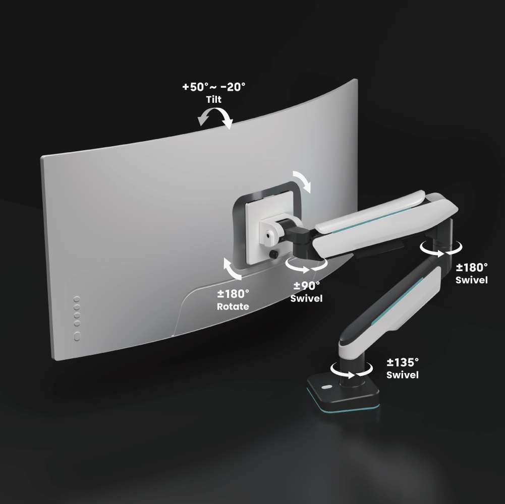 Brateck Single Heavy-Duty RGB Gaming Monitor Arm Fit Most 17″-49″ Monitor VESA 75×75,100×100