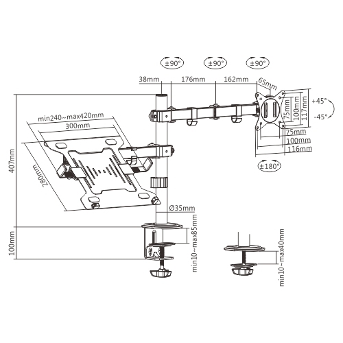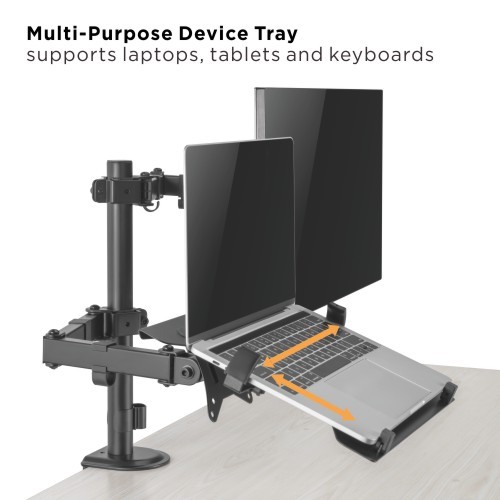 Brateck Steel Monitor Arm With Laptop Tray Fit Most 17″-32″ Monitor Up to 9KG Laptops up to 4kg 10”-15.6” VESA 75×75,100×100(Black)